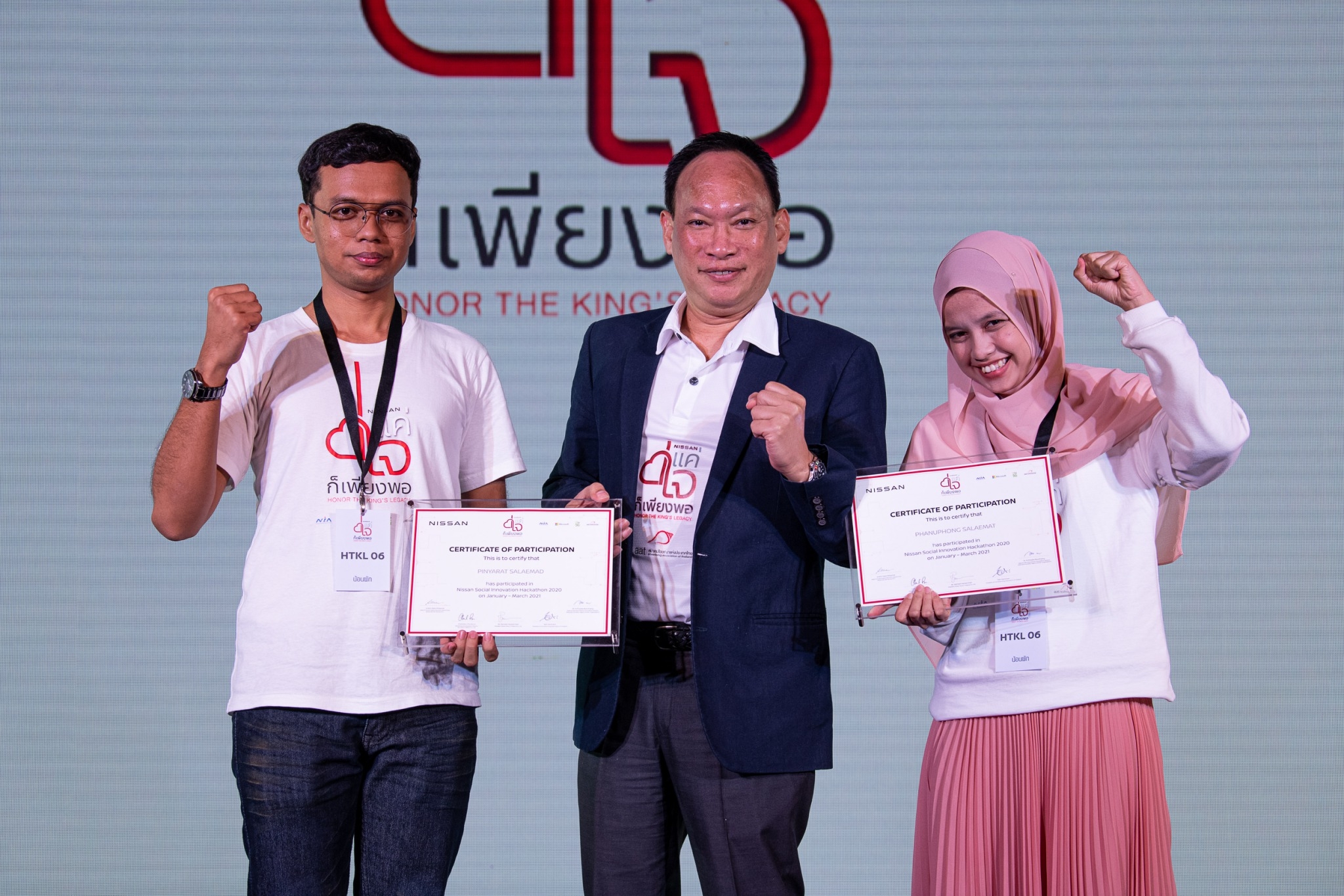 ในวัน Final Pitching Day โครงการ HTKL แค่ใจก็เพียงพอ ที่ผ่านมา ผู้เข้าแข่งขันทั้ง 12 ทีม ได้รับใบ Certificate จากนิสสัน มอเตอร์ (ประเทศไทย) จำกัด เพื่อเป็นสิ่งที่ยืนยันในความมุ่งมั่นตั้งใจตลอดเวลาการแข่งขัน ที่ต้องผ่านการคัดเลือกจากทั้งหมด 337 ทีมทั่วประเทศไทย จนเข้ารอบมาสู่ 12 ทีมที่สร้างสรรค์มากที่สุด ผู้เข้าแข่งขันทุกทีมได้เป็นส่วนหนึ่งที่อยากจะสร้างสังคมให้ดีขึ้นด้วย Social Innovation และเพื่อเป็นกำลังใจให้สร้างสรรค์สิ่งเหล่านี้ต่อไป และหวังว่าจะสามารถสร้างแรงบัลดาลใจให้เกิดนวัตกรหน้าใหม่มากขึ้นกว่าเดิมภายใต้โครงการของ Nissan Social Innovation